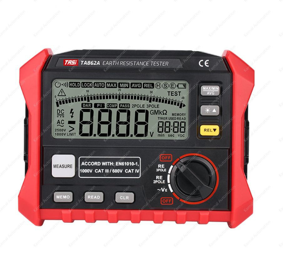 Measurement method: 2-wire method/3-wire methodGround resistance - measuring range: 0.01~29.99Ω/30.0~99.9Ω 100~ 999Ω/1.00k~4.00kΩ          Accuracy: ± (3% reading + 3 words).          Resolution: 0.01Ω/0.1Ω/1Ω/10ΩGrounding voltage - measuring range 0~200V (50/60Hz).          Accuracy: ± (1% reading + 5 words).          Resolution: 0.1VData storage: 100 groupsData Hold: ✔Max/Minimum/Average: ✔Backlit display: ✔Low Voltage Tips: ✔Auto power off: ✔ (10 minutes of no operation auto power off).Operating environment: 0~40°C, relative humidity below 85%.Storage environment: -10~50°C, relative humidity below 85% (remove battery)